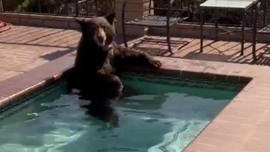 Policija Burbenka, u Kaliforniji, dobila je prijavu da se medved baškari u bazenu jedne porodične kuće. U to vreme, temperatura u gradu je bila oko 33 stepena. Medved je prvo primećen kako šeta naseljem pre nego što je odlučio da se bućne i rashladi.