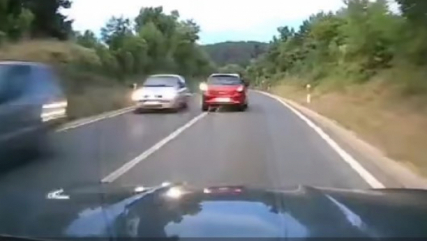 Nakon što su stranica Saobraćajne nezgode i nezgode, a potom i portal Dalmacija Danas, objavili snimak opasne vožnje državnim putem na ulazu u Sinj, kod Kukuzovca nam se javio vozač motocikla koji je zamalo nastradao. Vozač crvenog Seat Ibize odlučio je da prestigne putnički automobil preko cele linije i umalo izazvao čeoni sudar.