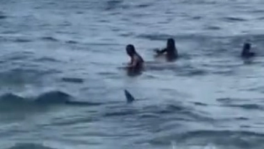 Inače, ajkula je plivala u tako plitkoj vodi da joj zadnje peraje i deo kičme izranjaju na trenutke.