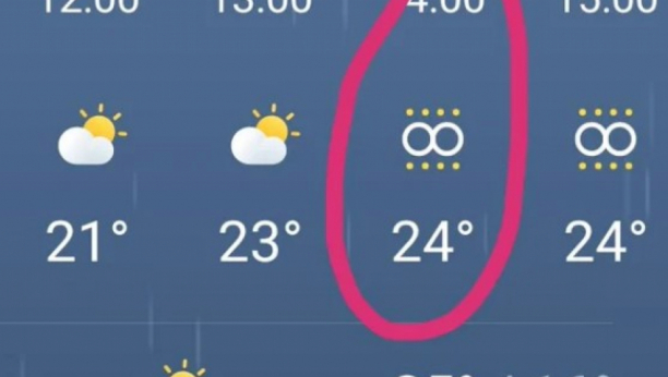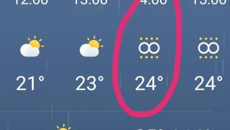 Jedna žena je na Tviteru objavila skrinšot aplikacije za vremensku prognozu Accuweather na kojoj se nalazi simbol koji je većini ljudi nepoznat. Spojena dva kružića. Kakve to vremenske prilike možemo da očekujemo u Beogradu?