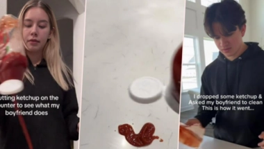 Jedna žena je objavila video kako njen dečko čisti nakon što je zasula pult kečapom i rekla da je "impresionirana" rezultatima. Njen dečko očistio je kečap papirnatim ubrusom i maramicom obrisao pult. Ljudi u komentarima su ga pohvalili zbog dobro obavljenog posla.