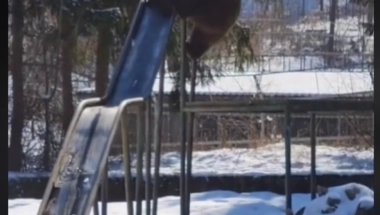 Međutim, snimak koji je objavio jedan korisnik TikToka šokirao je ljude. On je prolazio pred parka u blizini svoje kuće u naseljenom mestu i šokorao se kad je ugledao neobičnu scenu. Na video snimku se se vidi medved koji je popeo na vrh tobogana i koji se spremao da se spusti. Čovek je u neverici gledao ogromnu divlju životinju kako se nehajno ali oprezno spušta niz tobogan. Nakon što se životinja spustila nehajno je produžio dalje ne obraćajući pažnju na ljude.