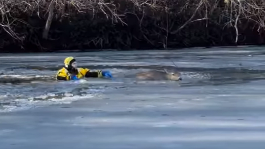 OVO SE NE VIĐA SVAKI DAN Vatrogasac velikog srca uskočio u ledenu vodu da spasi životinju (VIDEO)