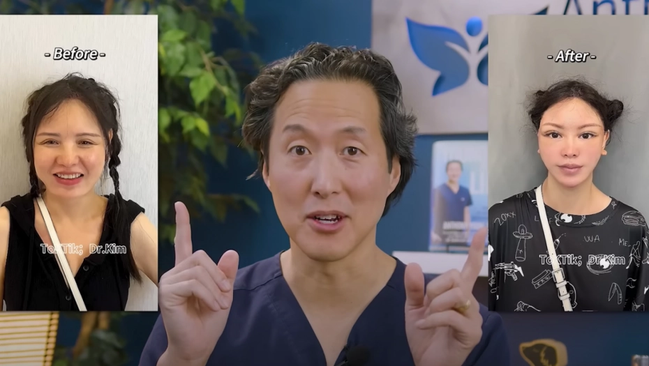 Svaki od njegovih video snimaka prikazuje fotografije pacijenta pre i posle procedure, obično zatezanja lica i kapaka. Zatezanje lica, koje često košta više od 10.000 evra, podiže i povlači kožu na licu kako bi izgledalo zategnutije i glađe. Međutim, rad dr Kim stvara ljude sa širim kapcima, rastegnutim licima i isklesanim vilicama."