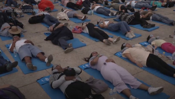 Ležeći na svetloplavim prostirkama za jogu, sa maskama za spavanje i putnim jastucima, stotine Meksikanaca ležalo je izvaljeno na tlu u podnožju kultnog Spomenika revoluciji u gradu da odspava.