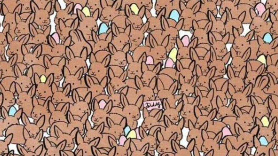 Ova optička iluzija u sebi krije tri čokoladna zečića, koji su vešto sakriveni među pravim zečevima.