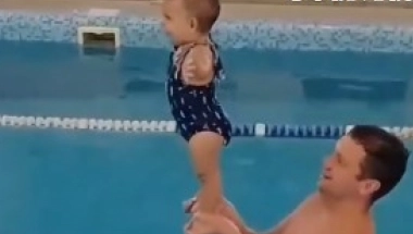 Nedavno je postao popularan snimak na kojem devojčica od nepunih godinu dana pliva i roni dok je održava njen otac ili trener.