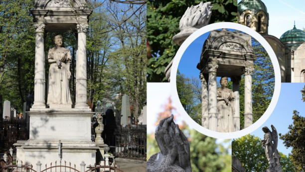 U senci stoletnih stabala preko puta crkve Sv. Nikole na Novom groblju u Beogradu može se videti izuzetna skulptura Dame u krinolini, delo čuvenog italijanskog vajara, đenovljanina Ahile Kanesa (1856-1905). U rodnom gradu je završio Akademiju Ligurija u kojoj je negovana tradicija neoklasicizma, a studenti ove akademije imali su mogućnost da se usavršavaju u Milanu, Bolonji, Veneciji, Torinu i Rimu, pri čemu su praktično su već nakon završetka studija mogli da rade na čuvenom groblju Staljeno u Đenovi, koje je danas prepoznato kao svetska kulturna baština od strane UNESC-a.