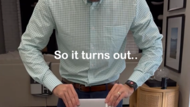 U klipu koji traje minut i 20 sekundi, čovek iz Dalasa počinje svoj dan tako što se prikazuje i oblači za svoj kancelarijski posao u osiguranju. Nakon oblačenja priprema priprema proteinski šejk, pakuje svoj laptop i iznosi smeće napolje, a na putu do posla se zaustavlja u prodavnicu krofni.