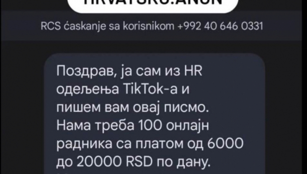 OBEĆAVA SE ZARADA OD 6.000 DO 20.000 DINARA PO DANU Prevaranti u Srbiji smislili novu "navlakušu", stručnjaci upozoravaju ne otvarajte poruku