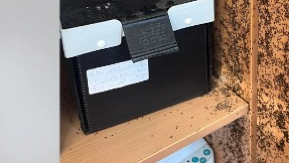 Međutim, nakon detaljnijeg pregleda, ispostavilo se da to nije prljavština, već stotine mrava koji su ormar učinili svojim domom.