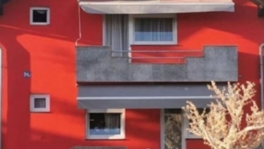 Na prvi pogled, možda se čini da je pozlaćeni kipovi lavova na ulazu u dvorište dovoljan da zadovolji estetske apetite vlasnika, ali ova kuća ide korak dalje. Na kričavo crvenoj fasadi, uzornici će primetiti i potpuno bizaran mural crkve, koji dodaje notu ekscentričnosti celokupnom izgledu.