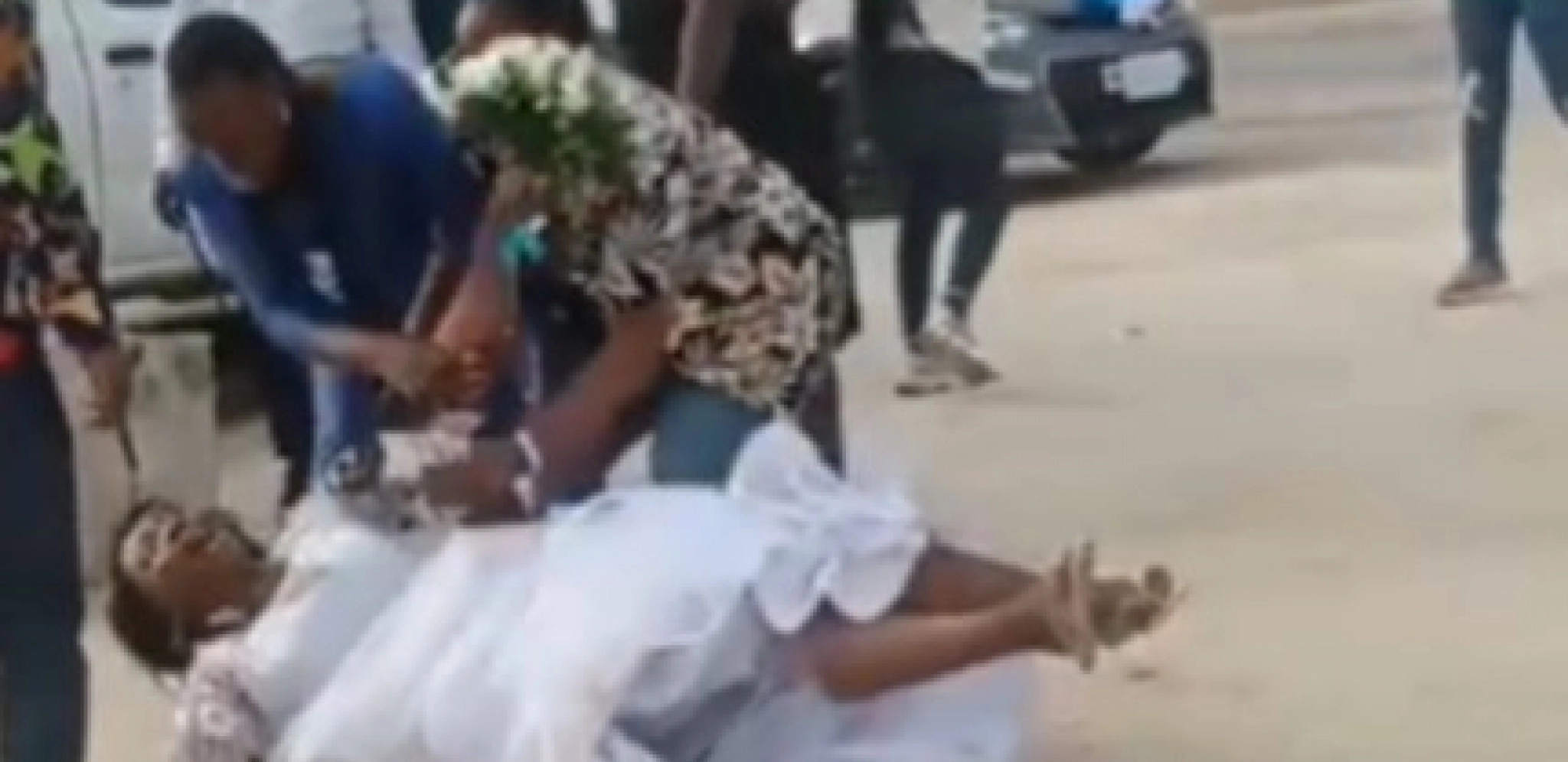 Na snimcima koji su se pojavili, moglo se videti mladu u venčanici kako plače i moli za oprost, padajući na kolena na ulici i udarajući ljude buketom cveća.