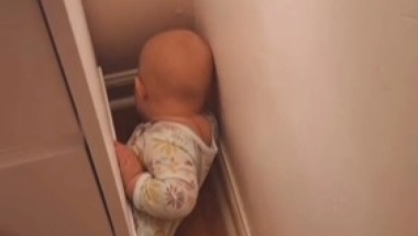 U snimku se vidi kako se Tesa zaglavila iza komode, a kada je majka upitala da li se zaglavila, beba je smireno odgovorila: "Zaglavila se."