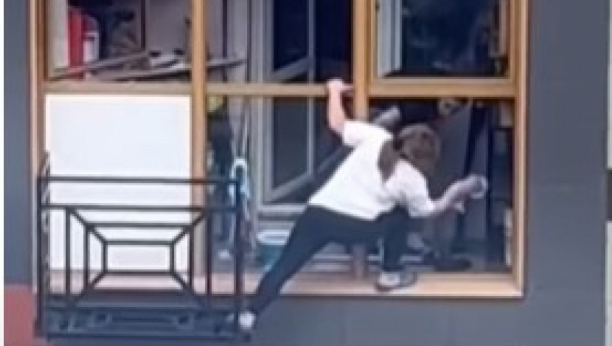 ŽENA IZAŠLA NA PROZOR, PA PRESTRAVILA ČITAVU ZGRADU Ni u ludilu ne perite prozore ovako! (VIDEO)