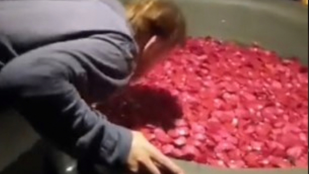 Snimak, koji je izazvao burne reakcije, počinje prikazom metalne činije s vodom i crvenim laticama.