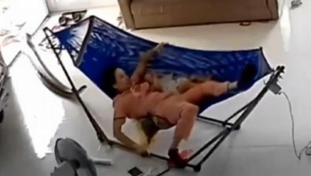 Dok pažljivo prati kako dete uživa u popodnevnoj dremci, iznenada ga munjevito grabi i beži iz prostorije, zapomažući.