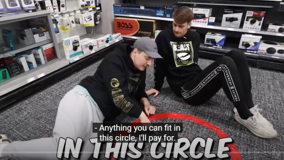 Ovoga puta, odlučio je da napravi izazov kome bi malo ko odoleo - nacrtao je crveni krug na podu prodavnice i rekao da će platiti sve što ljudi uspeju da smeste u njega.