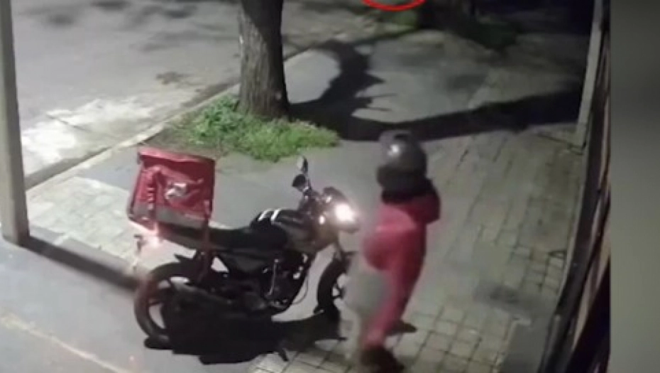 Na početku snimka, dostavljač je pored motora i u mraku se vide dvojica prestupnika. Kurir ih je odmah primetio, ali nije reagovao.
