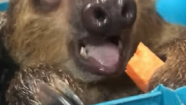 Nisu oni krivi, metabolizam im je veoma usporen i zato su tako spori. Za neke ljude nema opravdanja, ali bože moj, to je druga priča.Ovaj lenjivac je poreklom iz Teksasa, i možete ga videti kako žvaće svoju omiljenu užinu, slatki krompir.