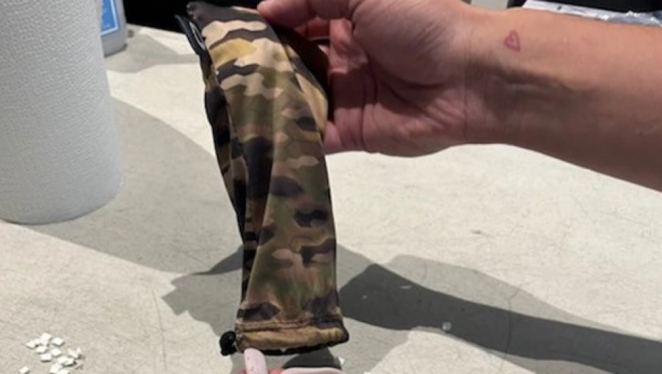 Tokom pregleda, policajci su pronašli šest platnenih kesa zalepljenih trakom u džepovima njegovih pantalona.