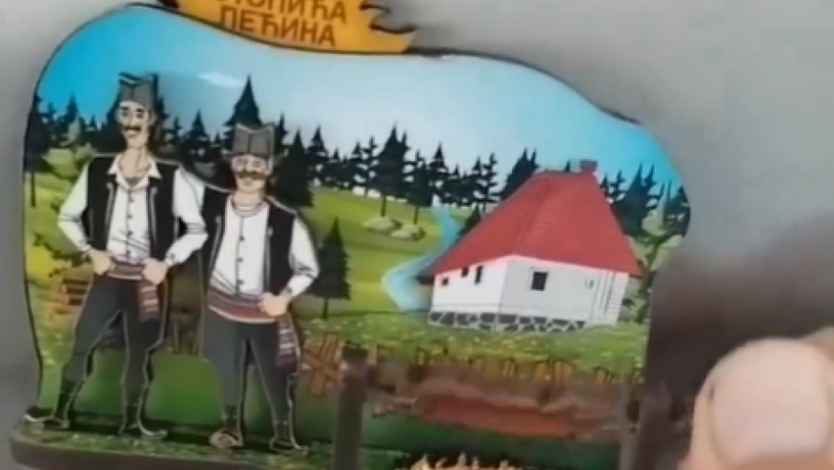 Međutim, na mrežema je pravi hit postao neverovatan suvenir iz Stopića pećine, koji prikazuje dva muškarca u tradicionalnoj srpskoj nošnji, a pored je prase na ražnju koje može da se vrti.