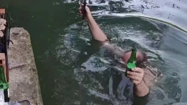 Hladno pivo u jednoj ruci, spatula u drugoj, a on svaki put kad okrene meso, bućne u vodu da se rashladi. To je pravo umetničko delo roštiljanja - sa dodatkom ronjenja!