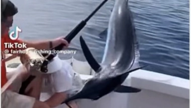 Na početku snimka vidimo ribara kako se bori s atlantskim plavim marlinom, koji iznenada skače u čamac. Falilo je samo nekoliko milimetara da oštra sablja ribe probode ribara u vrat.