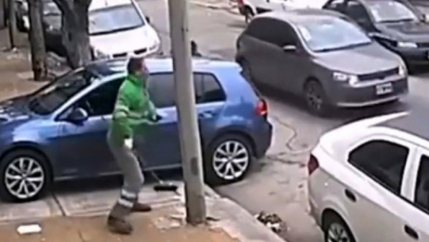 I kada je mislio da je ostao bez ljubimca, u kadru se iznenada pojavljuje radnik Gradske čistoće, opremljen metlom!