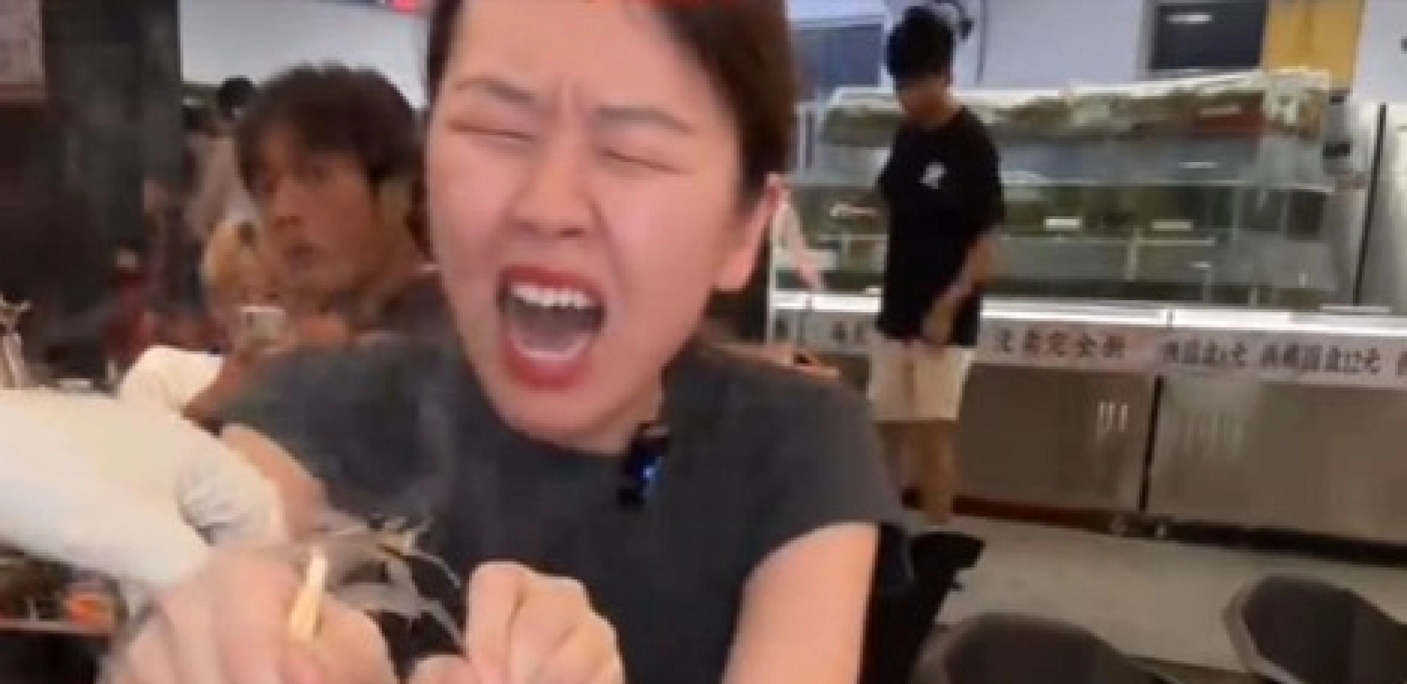 Dok je žena pokušavala da vrati rakove u tanjir pomoću štapića, jedan od njih, koji se još uvek micao, ščepao ju je za ruku.