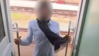 Na snimku koji se širi društvenim mrežama, vidi se kako stoji unutar voza, nagnuta kroz otvorena vrata. Zatim izlazi na stepenik ispred kabine, držeći se za rukohvate, okreće se i naginje unazad.