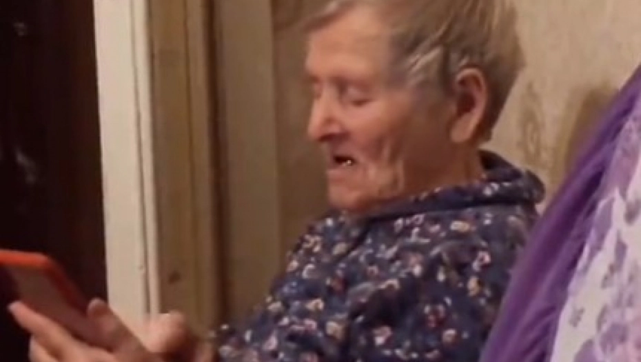 Na snimku, baka, pre nego što prstom prevuče po ekranu telefona, po navici lizne prst, kao što bi to učinila dok lista novine.