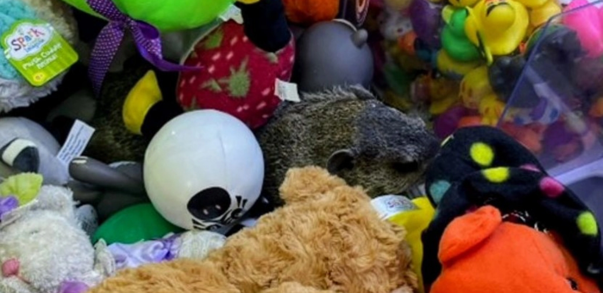 Ispostavilo se da to nije bila plišana igračka, već pravi mrmot koji je nekako uspeo da se uvuče u automat.