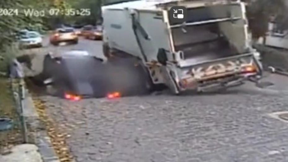 Rupa je "progutala" dete koje je upravo zakoračilo na ulicu, kao i deo kamiona za prevoz smeća.