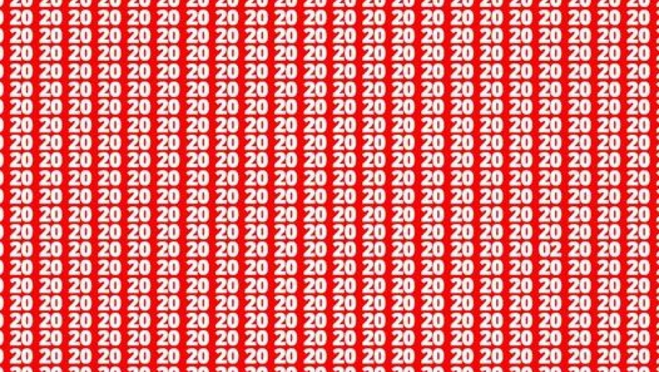 Jedna takva vizuelna zagonetka je i pred vama. Na prvi pogled, ova mozgalica izgleda izuzetno jednostavno. Naime, među desetinama brojeva 20, negde se skriva "o2".
