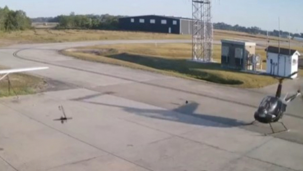 Sigurnosna kamera zabeležila je trenutak kada je laki helikopter Robinson R44, prilikom poletanja, 27. oktobra oko 9.30 časova, udario u parkirani avion.