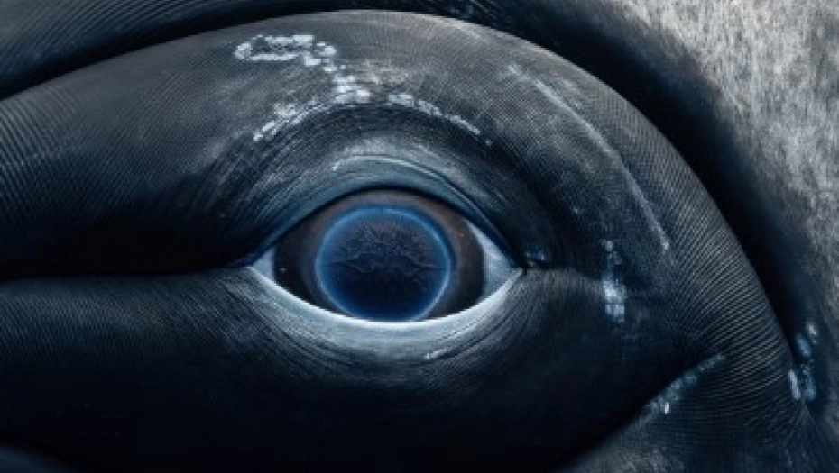 Ova fotografija prikazuje oko zaštićeno specijalnom slojem masti, koja kitovima pomaže da regulišu temperaturu u dubokim okeanskim vodama.