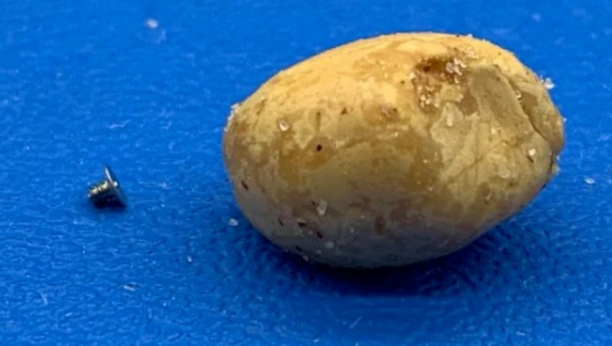 Međutim, kada malo bolje pogledate – shvatićete da je to zapravo kikiriki! Iluziju stvara poređenje s malim šrafom iz mobilnog telefona, koji je znatno manji od kikirikija.