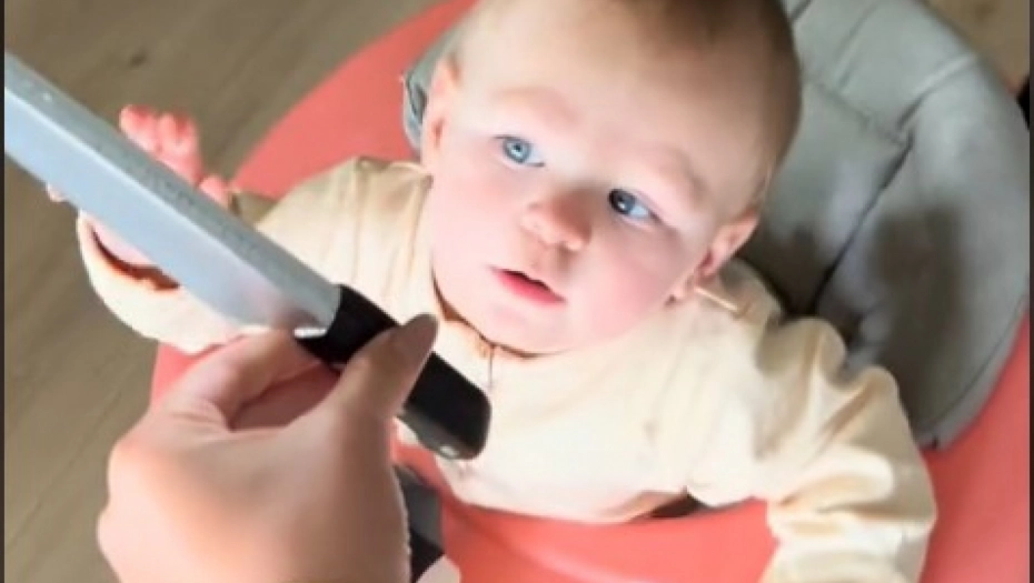 PRESLATKA BEBA MLATARA ''NOŽEM'' PO KUĆI Kada vidite reakciju ukućana, plakaćete od smeha - totalni hit! (VIDEO)