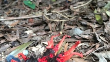 Poznavatelji gljiva brzo su otkrili identitet ovog bizarno izgledaćeg organizma – reč je o vrsti Aseroe rubra, poznatoj i kao "morska zvezda gljiva".