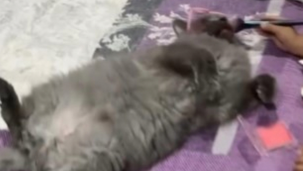 Mačka, koja je bila prekrivena rumenilom, karminom i naočarima, ostala je izuzetno mirna tokom šminkanja, što je izazvalo mnoge komentare na internetu.