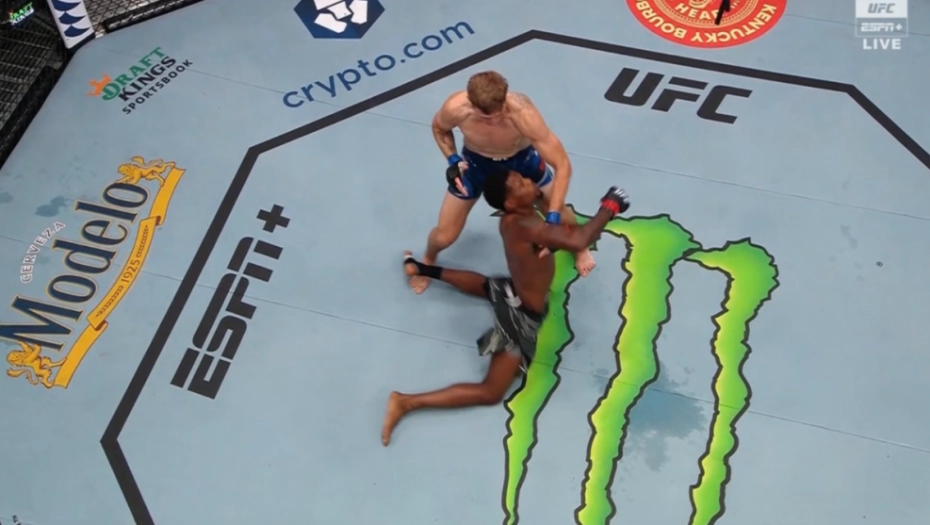 Kevin Holand je ostao bez svesti sredinom prve runde i to se dogodilo nakon što je došlo do sudara glavama sa Daukasom, pa je Holand pao kao pokošen.