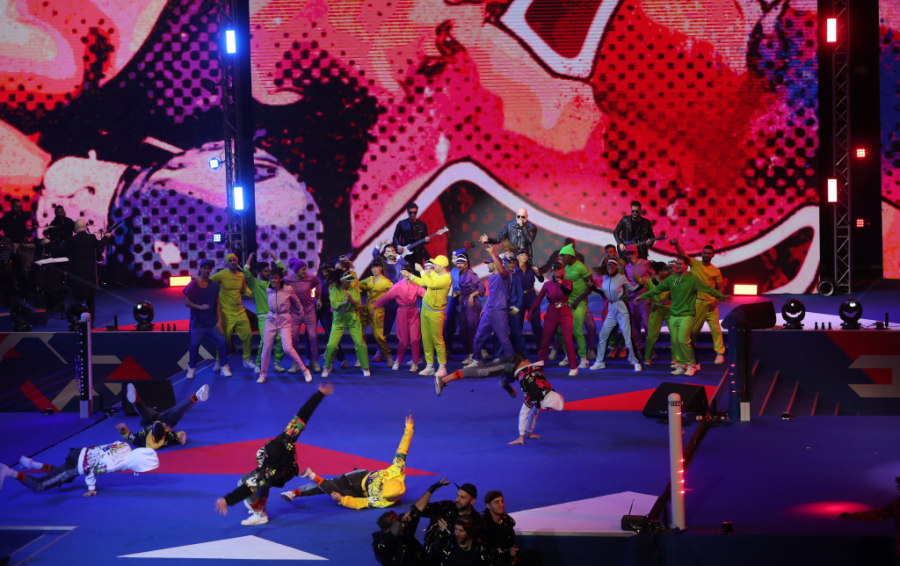 19.22 - Spoj tradicije sa modernim. Na bini su trubač i folkloraši zajedno sa brejkdenserima.