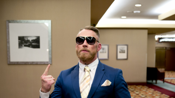 Podigao je palac prema gore i sarkastično je "čestitao" osobi koja je bacila šešir. U nastavku snimka vidi se kako je borac nagazio šešir koji je završio na podu i pritom je ljutito nešto dobacio osobi koja je bacila predmet.