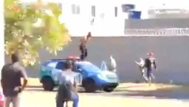 Koimbra je ponovo počeo da divlja u policijskom automobilu. Uspeo je da se oslobodi, izašao je napolje i počeo je skakati po krovu auta.