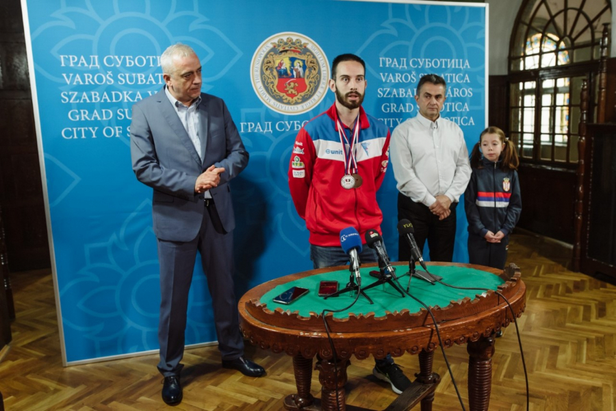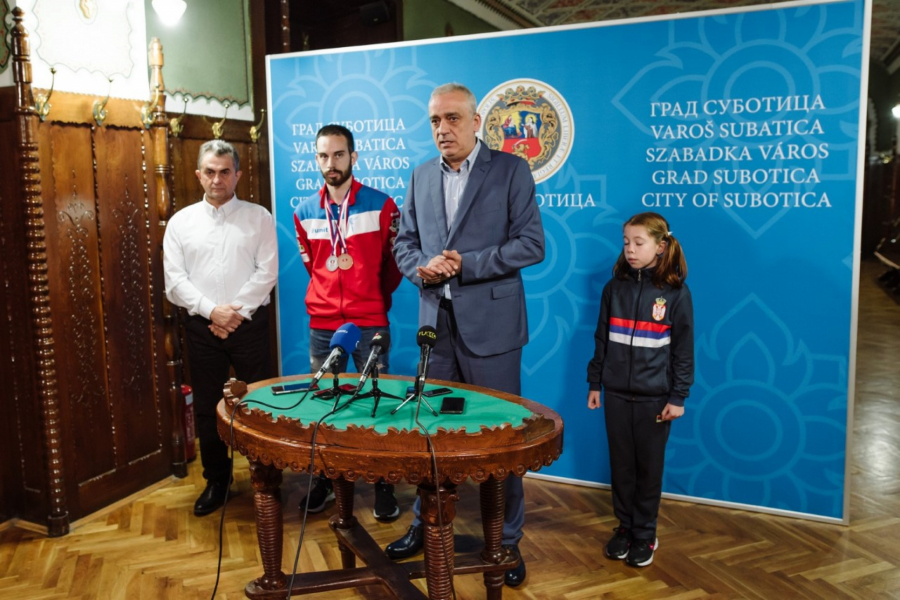 Obraćajući se medijima nakon prijema u Plavoj sali Gradske kuće, gradonačelnik Bakić je naveo da je na Svetskom prvenstvu u Karlovim Varima nastupilo više od 2.000 takmičara iz 29 država sveta, da je reprezentacija Srbije u generalnom plasmanu zauzela peto mesto i da je boje reprezentacije branilo sto trideset i troje takmičara, od kojih je njih dvadeset i troje iz Karate kluba „Spartak-Enpi“.