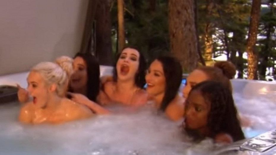 Američke rvačice su potpuno gole, sa flašama alkoholnih pića u svojim rukama i oko đakuzija...
