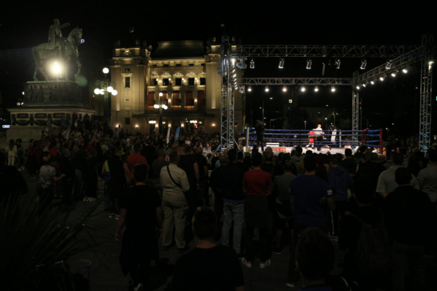 Bokserski savez Srbije na Trgu republike u Beogradu "oživeo je spektakl" iz sedamdesetih godina prošlog veka kada je Tašmajdan bio mali da primi sve poklonike plemenite veštine.