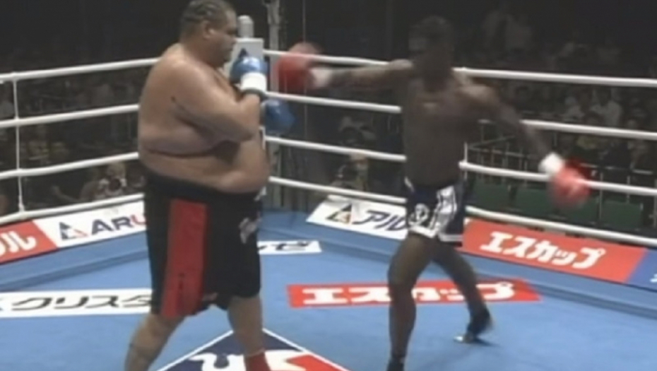 Japanski sumo rvač Akebono Taro se pre 15-ak godina odlučio da oproba u K1 kategoriji, pa se našao u ringu sa kik-bokserom Remijem Bonjaskim.