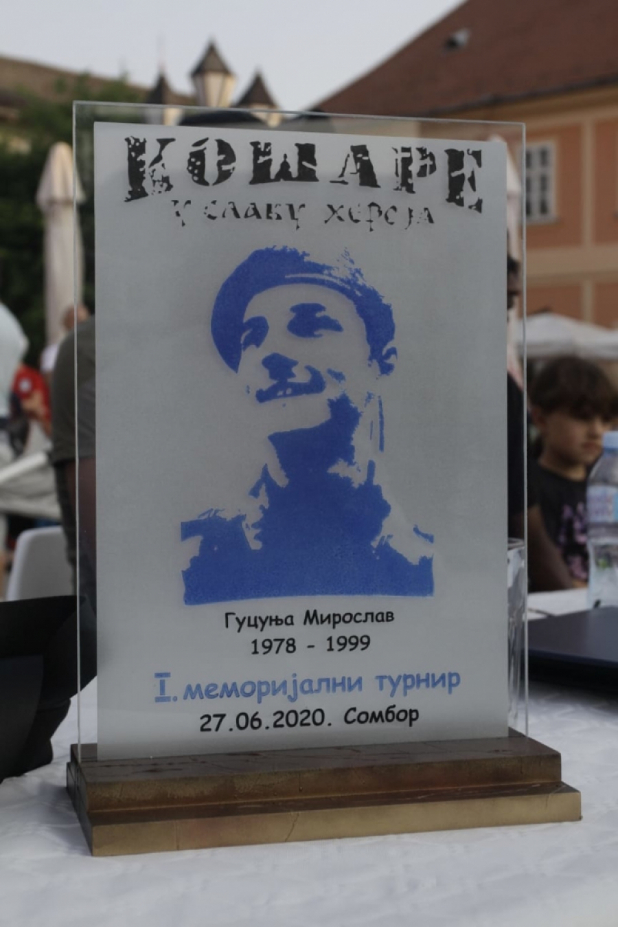 Događaj u samom centru ovog vojvođanskog grada organizovan je u čast pokojnog Miroslava koji je sa samo 21 godinu dao život za Srbiju na Kosarama i kojeg njegovi sugrađani Somborci nikada neće zaboraviti. Veljko je uručio plaketu pobedniku turnira i majci Miroslava Gucunje,Kosani.